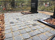 После создания основания мы покрыли территорию места захоронения гранитной брусчаткой,